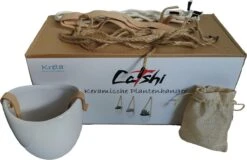 Gadgy Plantenhanger Keramiek – Set Van 3 – Hangpot Van Wit Steen – Hangende Bloempot Plantenpot – Met 3 Verschillende Koorden – 12x11x9.5CM