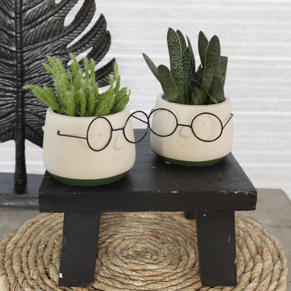 - Inhoud verpakking: 2 Bloempotten met metalen bril (zie hoofdfoto)