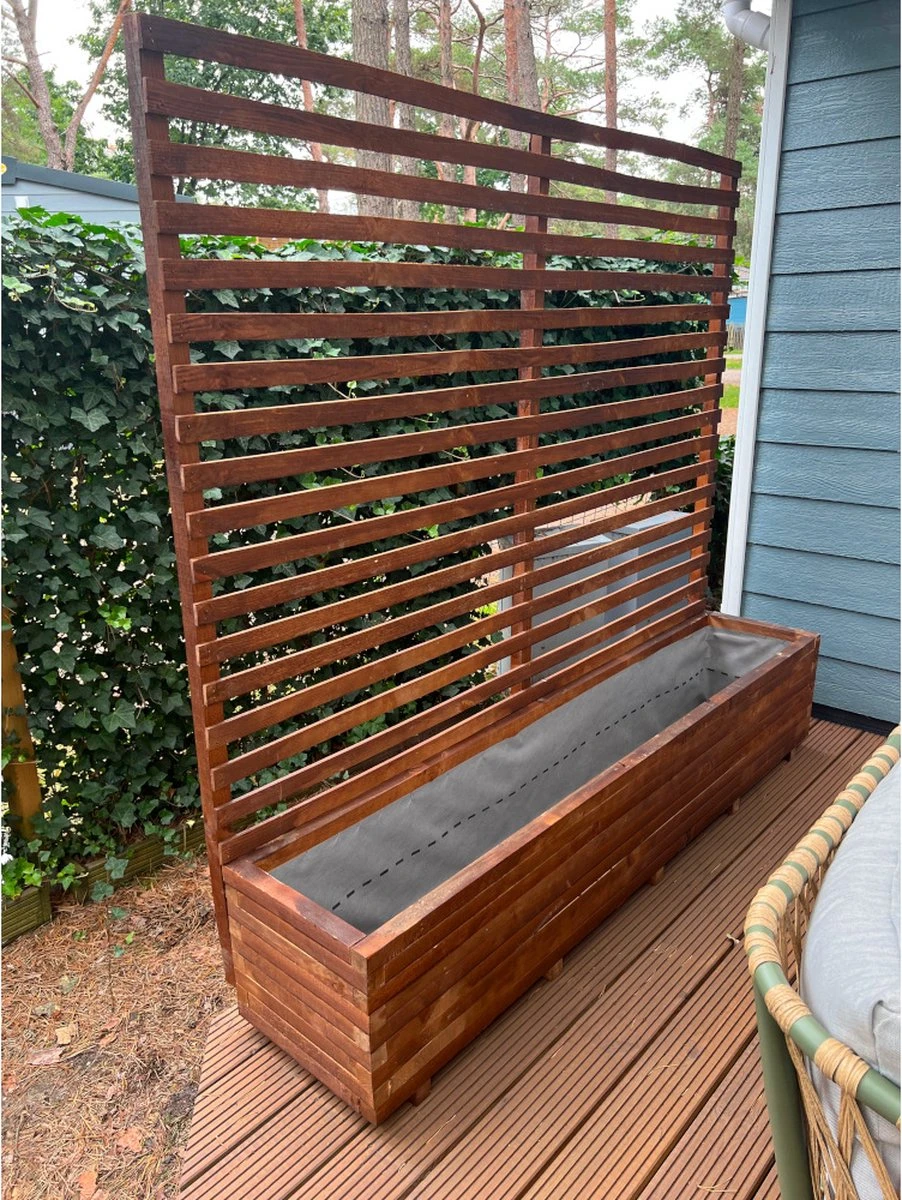 AMISHOUT – Plantenbak Met Klimrek 200x40x40 (180) Cm – Bruin
