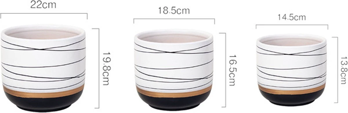 Het potten zijn vervaardigd van keramiek, wat een duurzaam product is en op esthertisch gebied hoge kwaliteiten bezit. Zo zijn ze kleurvast, vrij van schadelijke stoffen en belasten het milieu in mindere mate zoals bijvoorbeeld kunststof. Bovendien Gouden rand