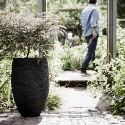 De Rib-textuur geeft deze pot een natuurlijke look. Deze textuur is geïnspireerd op gevlochten riet en de dunne lijnen daarvan. De smalle, dansende lijnen zorgen naast een natuurlijke look ook voor een speelse touch aan deze potten. De Nature Rib NL is verkrijgbaar in de kleuren zwart, ivoor, antraciet en donkerbruin. Deze verschillende kleuren geven iedere bloempot een eigen karakter.