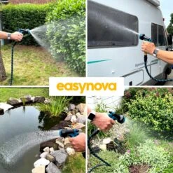 Traditionele, rubberen tuinslangen zijn vaak onhandig in gebruik en raken in de knoop waardoor er knikken en vervolgens lekkages kunnen ontstaan. Easynova was niet tevreden met zo’n stugge tuinslang en is erin geslaagd hier buigzaam omheen te denken. Met als resultaat de Easynova flexibele tuinslang. Een slang met een lekvrij ontwerp, met kunststof beschermlaag tegen knappen en lekken. Het is de zorgvrije tuinslang die met je meebeweegt. Eindelijk gewoon zonder gedoe je plantjes water kan geven.