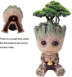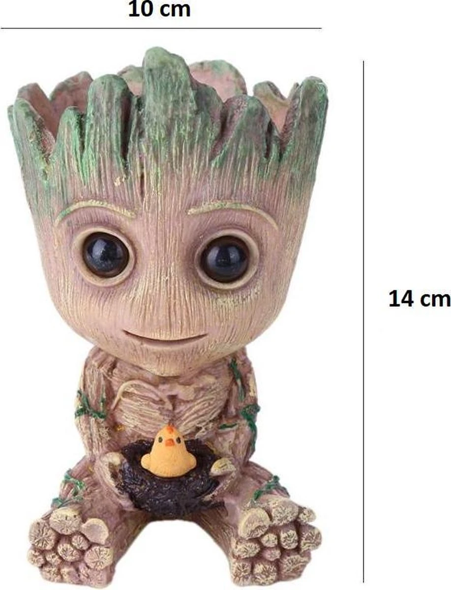Zijn hoofd is leeg en kan gevuld worden met b.v. een plantje of kan gebruikt worden als pennenhouder. Multifunctioneel en leuk voor jong en oud!! Bloempotje en Pennenbakje. Je gebruikt deze leuke en schattige Baby Groot Guardian of the Galaxy actiefiguur als bureauaccessoire zoals een bloempot, potloodhouder of pennenbakje voor een mooie decoratie in je woonkamer of kantoor. Dit is een Creatief handgemaakt ontwerp van de actiefiguur Groot. Organiseer je pennen, potloden en meer met dit schattige verzamelobject.