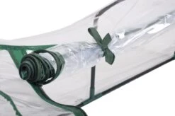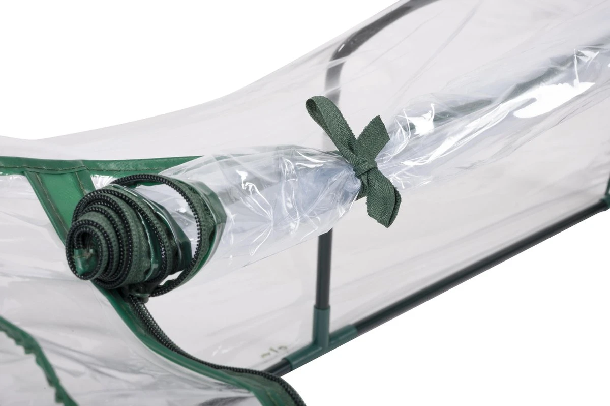 Deze tuinkas is een zogenaamde tunnelkas van circa 130 centimeter lang, 50 centimeter breed en een hoogte van ongeveer 60 centimeter. De kas heeft geen bodem; je zet hem direct op de aarde waar je gewassen staan. De doorschijnende folie benut optimaal de warmte en het licht van de zon, waardoor je een microklimaat creëert met een goede temperatuur en vochtigheid. De folie beschermt je planten tegen schadelijke insecten en weersinvloeden, zoals wind en regen. Aan beide uiteinden van de foliekas zit een rits, zodat je de folie goed kan openen om bijvoorbeeld je planten water te geven. De opgerolde folie kun je met lintjes vastzetten. Zo laat je de zaailingen ook afharden, waardoor ze wennen aan de temperatuur buiten de kas.