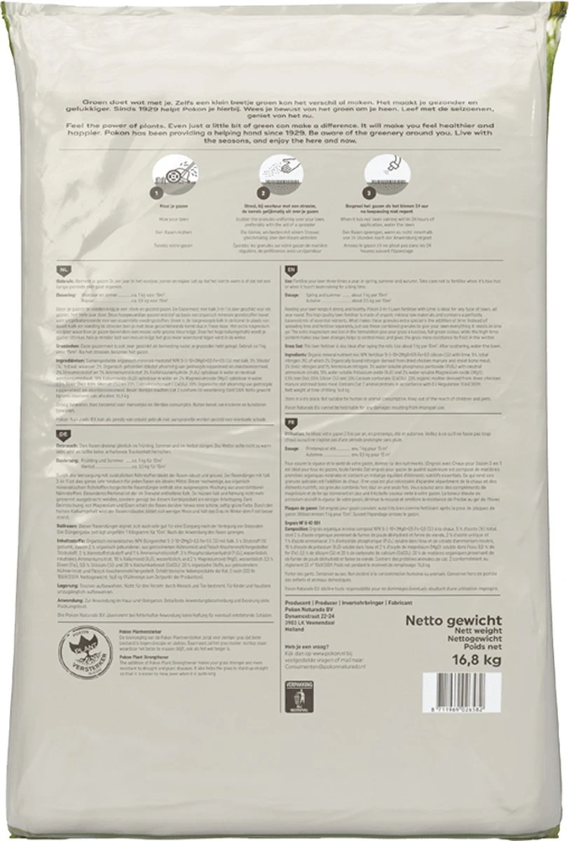 Met Gazonmest met Kalk van Pokon, ben je verzekerd van een groen en sterk gazon!