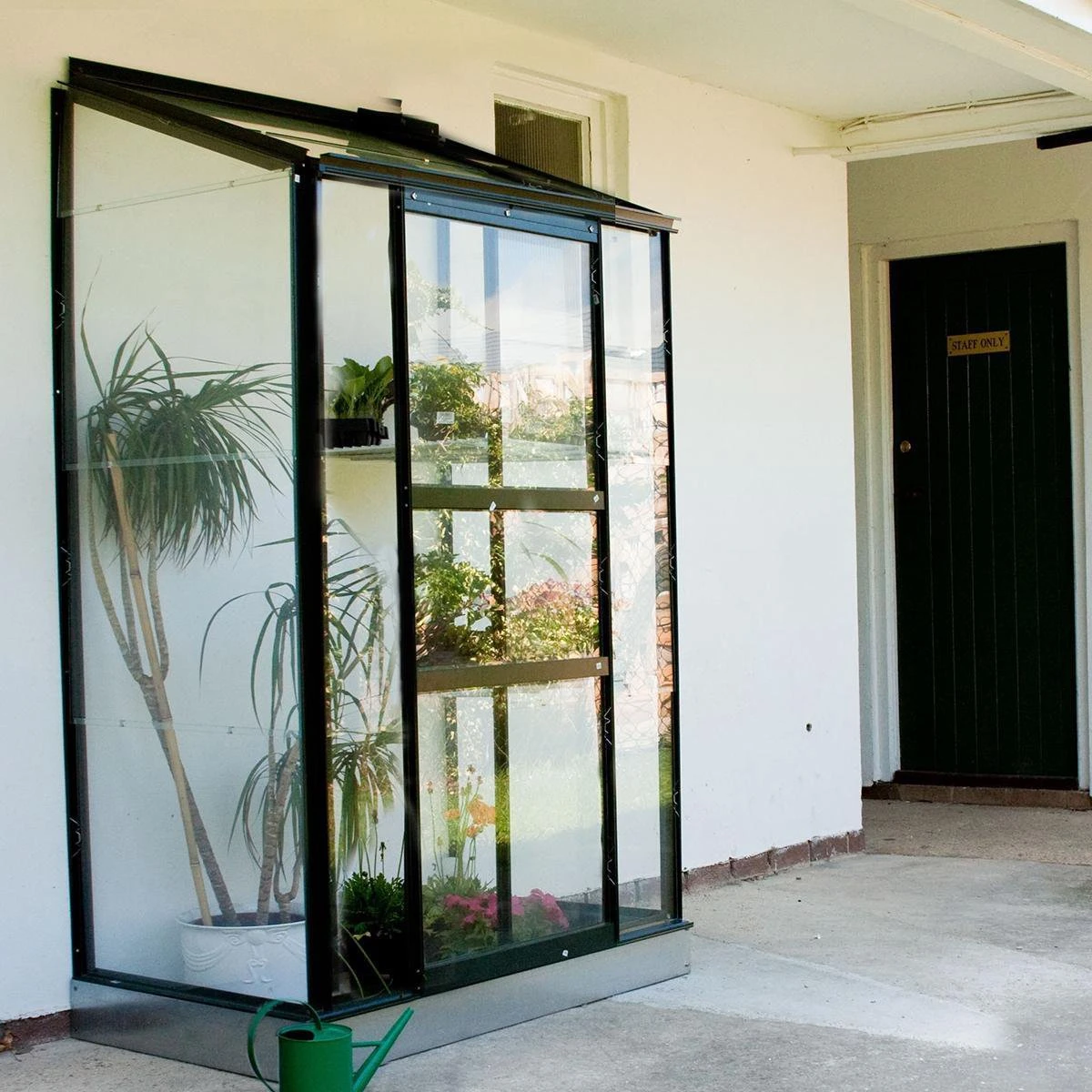 Wall Garden 42 groen gecoat en voorzien van veiligheidsglas 3mm. Jong en oud genieten van een kleine kas in de tuin, op het balkon of aan de rand van het terras. Hoe klein de tuin ook is, er is altijd wel een plekje voor een Wall Garden muurkas.