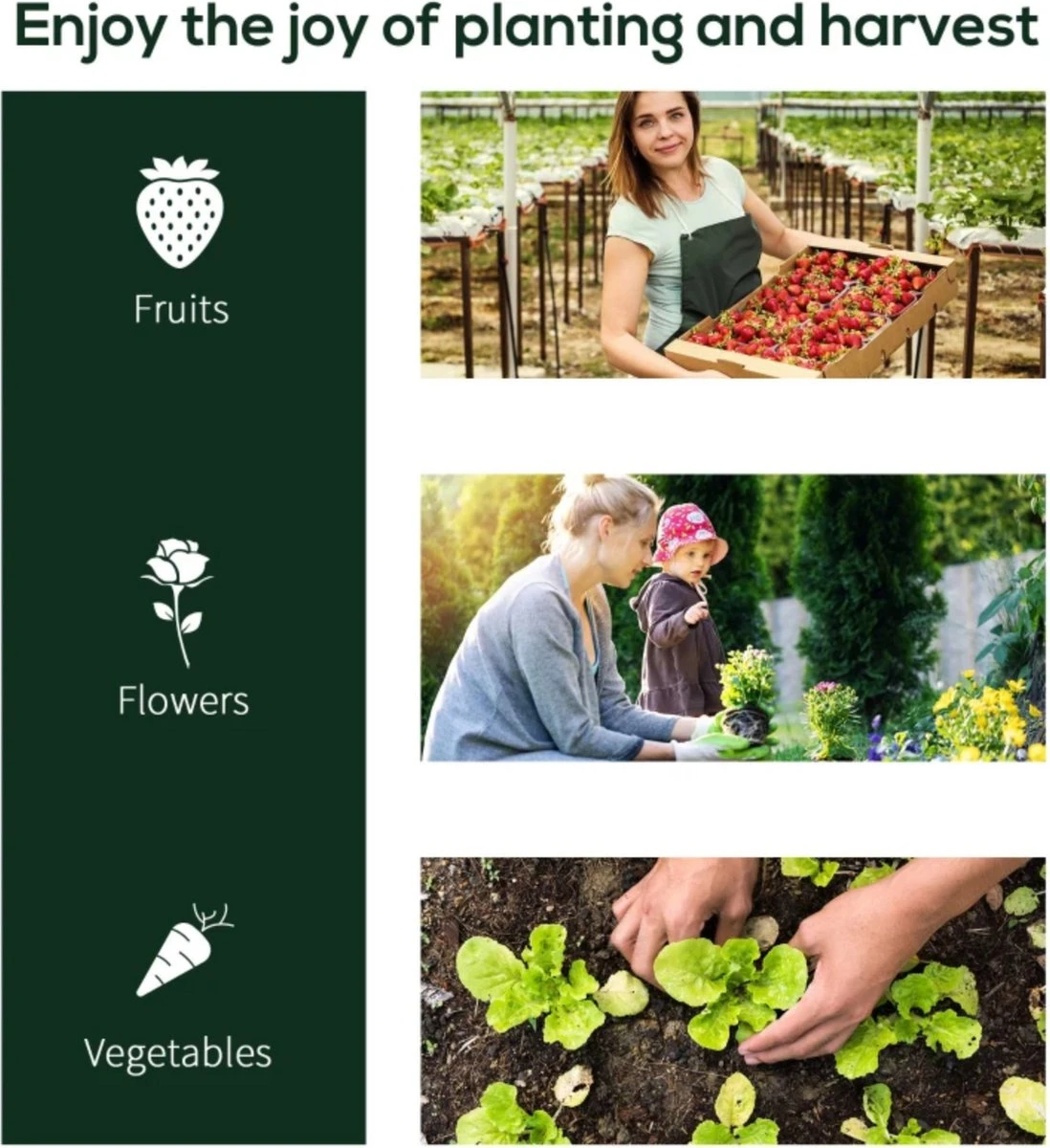 - Optimale hoogte voor bijna alle gangbare soorten groenten en fruit