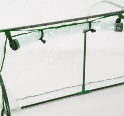 Verleng je tuinseizoen met deze compacte tunnelkas. Het frame van de kweekkas is gemaakt van stevig, gepoedercoat buisstaal. De kas hoes bestaat uit vorst- en weerbestendige PVC folie. Het hoogwaardige materiaal van deze broeikas is eveneens UV-bestendig en zorgt voor een goede warmteopslag. Voor gemakkelijk werken en toevoer van verse lucht, kun je de kas gemakkelijk open ritsen.