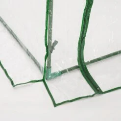 Tip: De folie is aan de zijkant 10 cm langer dan de metalen buizen, de onderkant kan in de grond worden ingegraven of verzwaard met stenen. Dit maakt de kas stabieler